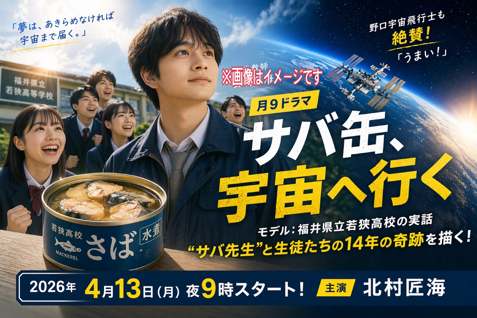 2026年4月13日、フジテレビの月9枠で北村匠海さん主演のドラマ『サバ缶、宇宙へ行く』がスタートします!