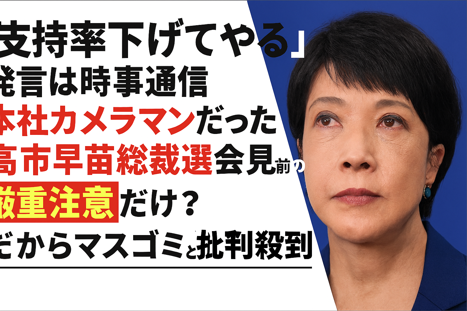 高市早苗さんの総裁選会見前に拾われた「支持率下げてやる」発言は、時事通信社の本社カメラマンによるものであることが判明しました。しかし、厳重注意という軽い処分に対して、SNSでは怒りの声が広がっています。